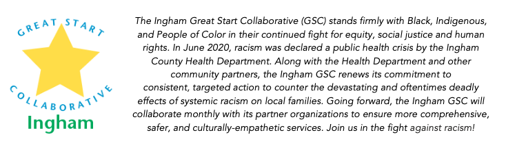 The Ingham Great Start Collaborative is coordinated by Ingham ISD Early Childhood Services staff who support teachers and families from birth to 3rd grade throughout the Ingham ISD service area. To learn more, check out the video (below):